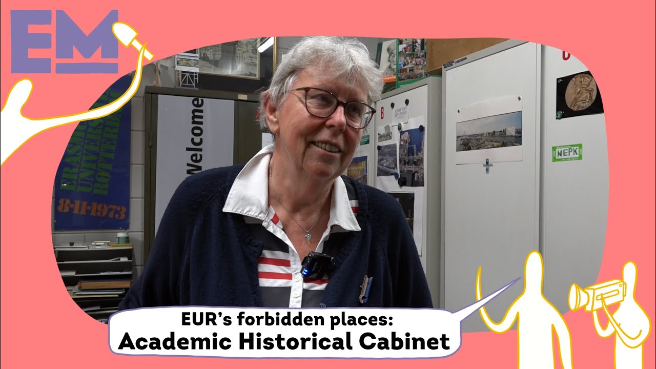Every item holds its own story. A bright orange hat is part of the bequest of Professor Tinbergen, the only professor at Erasmus to ever hold a Nobel Prize, and reminds of his honorary doctorate in Madrid. Association merchandise shows for how long associations have been active at Erasmus, trying to get new members. An old Quod Novum, the newspaper predecessor of Erasmus Magazine, gives insights into the current affairs of previous times. Still, new pieces are added to the collection every year, so that in the future, people can equally look back on the events of the current time. Boele, who knows the stories about most of the items but not all of them, is still very interested in the collection, including the upcoming ones: “History is always fascinating! And after all, our history is not that old.”