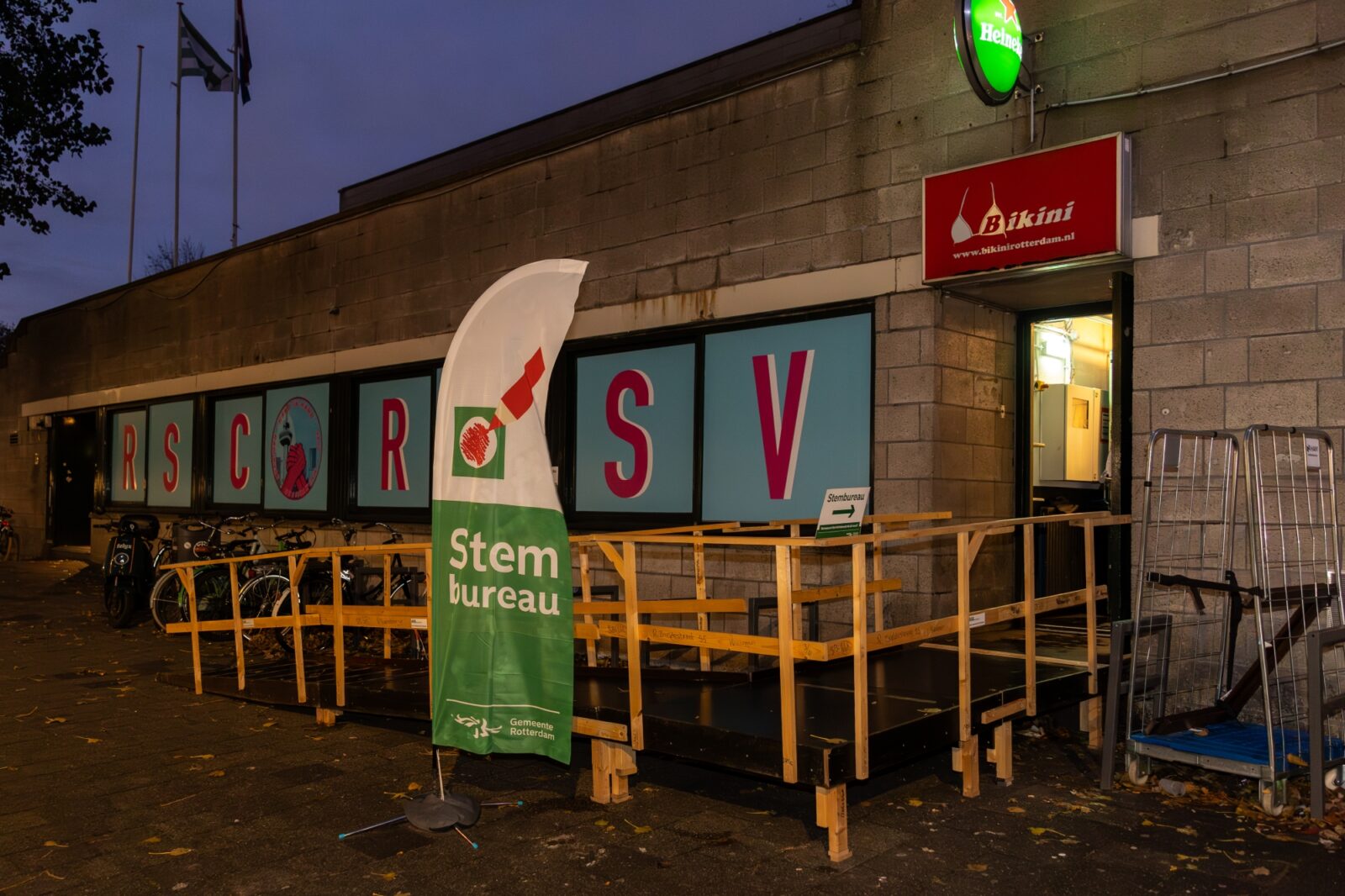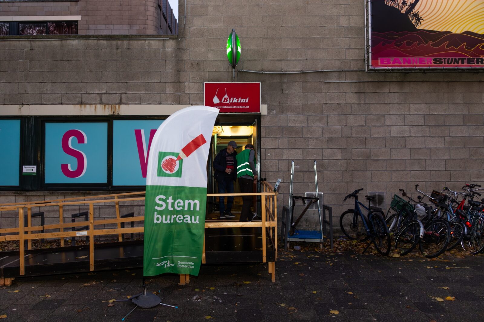 Night club Bikini is in the hands of a different kind of members this Wednesday: the members of the polling station, under the leadership of Jillian Benders. His team has been on site since 6.30. The voting booths were already up then, thanks to Mohammed. It’s their job to set the rest up.