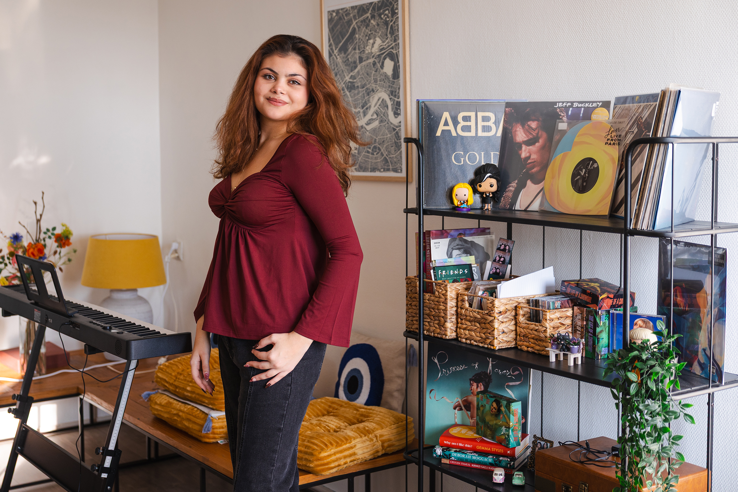 On a big shelf in her studio apartment, second-year Psychology student Neris Kayahan from Izmir, Türkiye, has a collection of a few vinyl records: Melodrama by Lorde, The Life of a Showgirl by Taylor Swift, and an old ABBA classic. Between these albums, each by artists she grew up inspired by, she has made space for her own creation: the debut album Love, Almost, that she released in September. Almost 20,000 Spotify listeners enjoyed the nine tracks that explore love, loss and self-discovery.