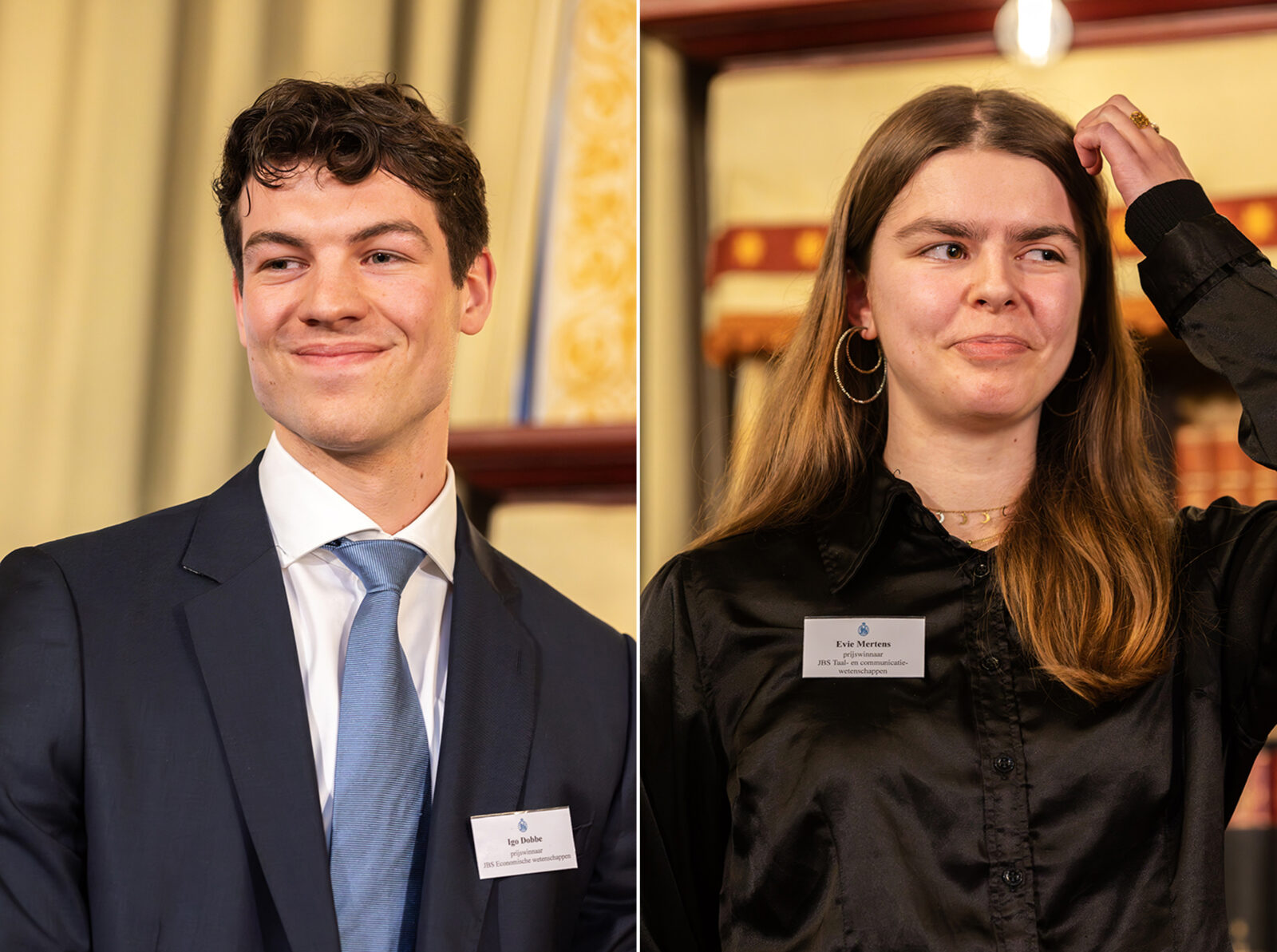 Igo Dobbe and Evie Mertens received the Jan Brouwer Scriptieprijs on Friday evening. The EUR alumni win 3,000 euros in prize money with their master’s thesis.