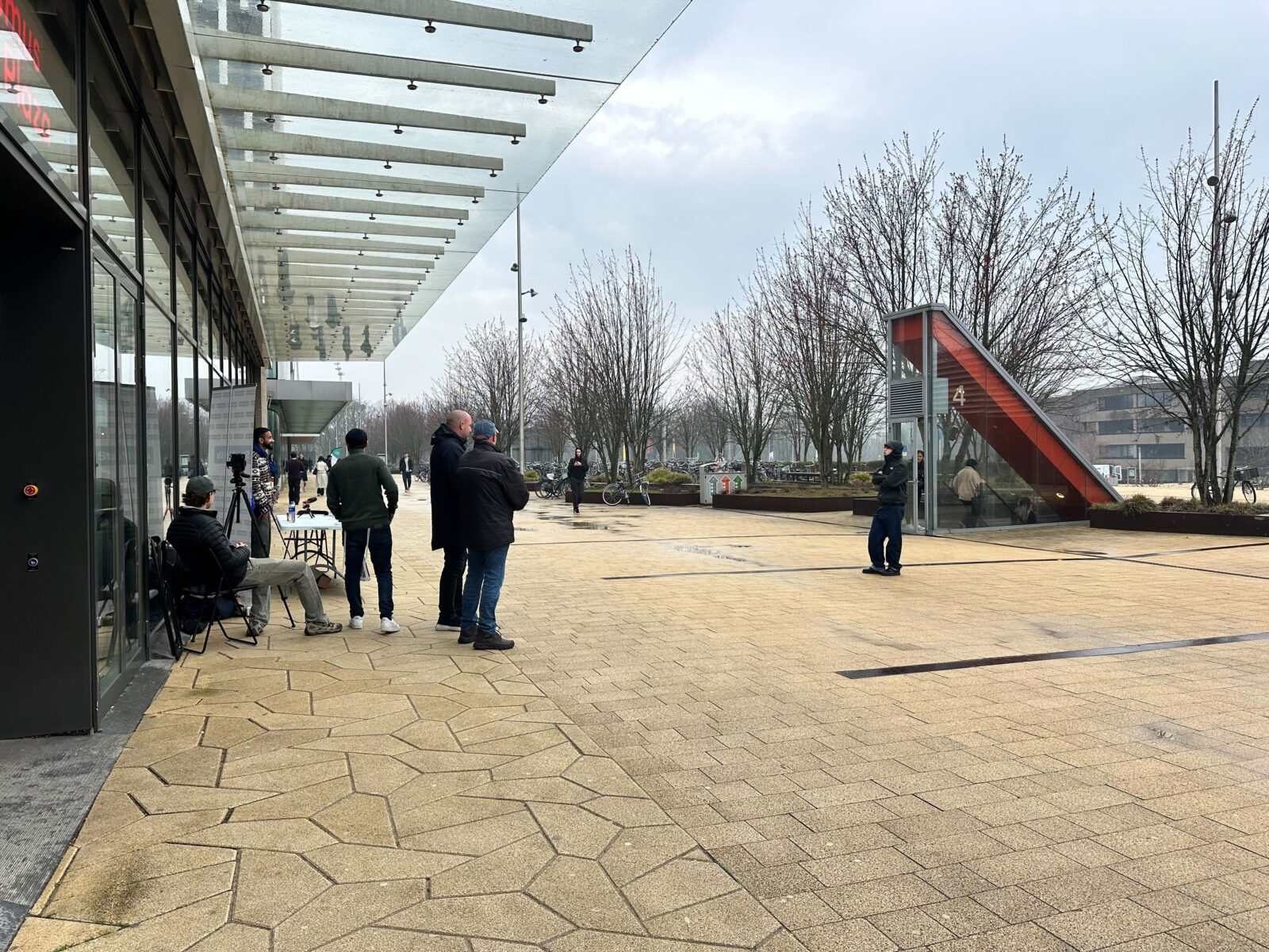 There is a heavy security presence on campus Woudestein. Three police officers walk across the soaking Erasmus Plaza and a campus security guard stands on every corner of the square. StandWithUs also brought two security guards with them.