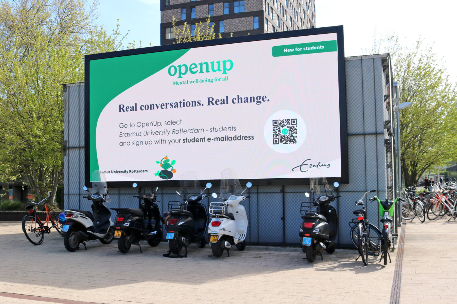 Therapy and coaching platform OpenUp is now also available for students and is being promoted at Erasmus Plaza.
