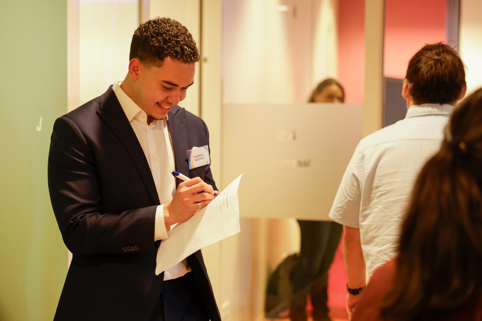 Roderick Wouters, master’s student in Finance & Investments, checks the guest list.
