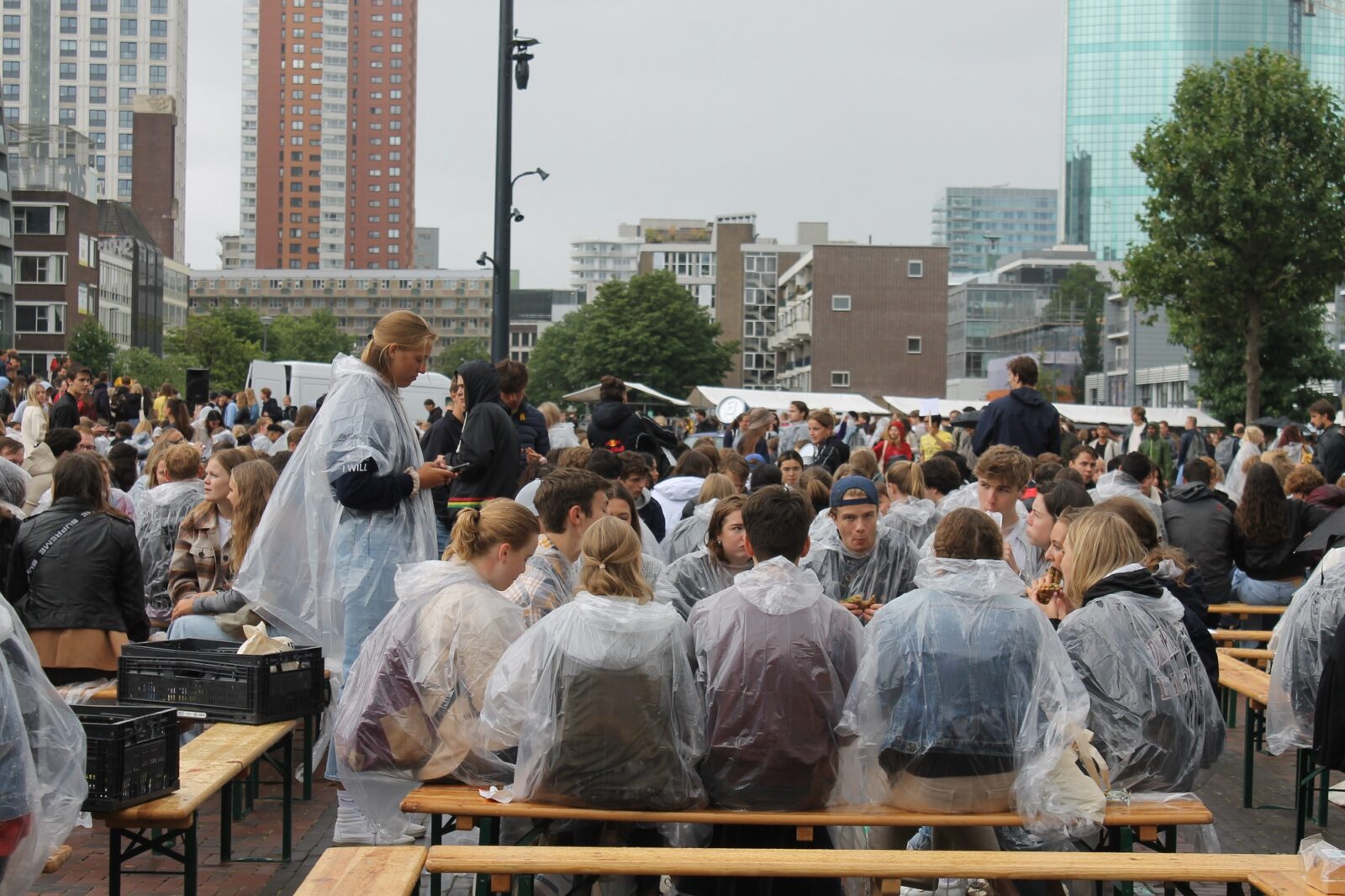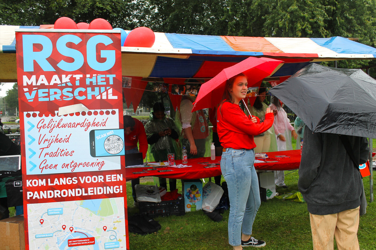The rainy Monday turned into a rainy Tuesday. On campus it has not been this busy in a year and a half. At the information market (not on campus this year, but in the park Oude Plantage) it’s also raining steadily. In the evening the students are sitting dry in Ahoy, if they do not spill during the beer cantus.