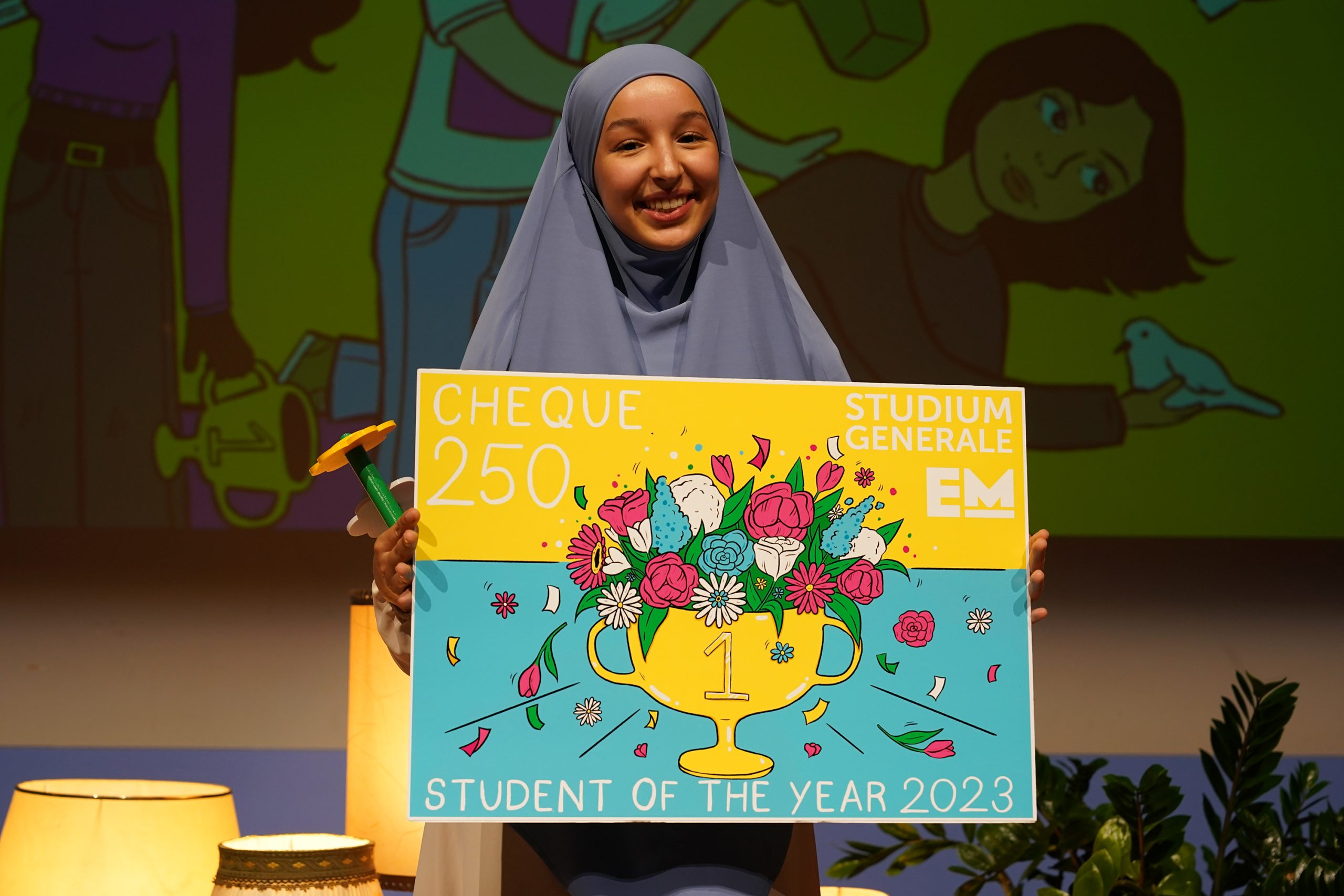 From dozens of nominees to six finalists who shared their stories, the elections culminated in the live show to announce the Student of the Year 2023. The live show included the nominees sharing their stories, as well as live performances from EURvision winners and a campus poet. To her own disbelief, it was announced that Hassnae Boubrik is the Student of the Year!