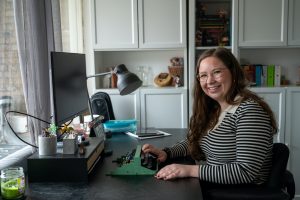 At Kyra’s home you’ll see all the colours of the rainbow. She is the creative type and loves to paint. She gets to go all out on the largest creative project she has ever undertaken: her own accessible home. All too often, accessibility is not a given for Kyra.