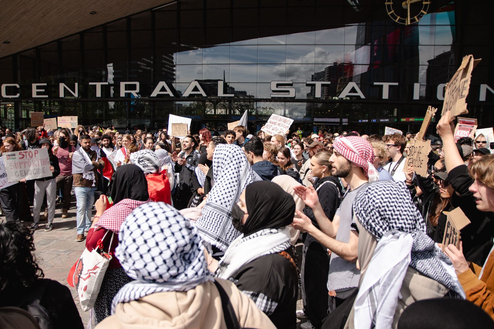 Palestijns protest op Rotterdam Centraal: ‘Ik had graag willen protesteren op de campus’