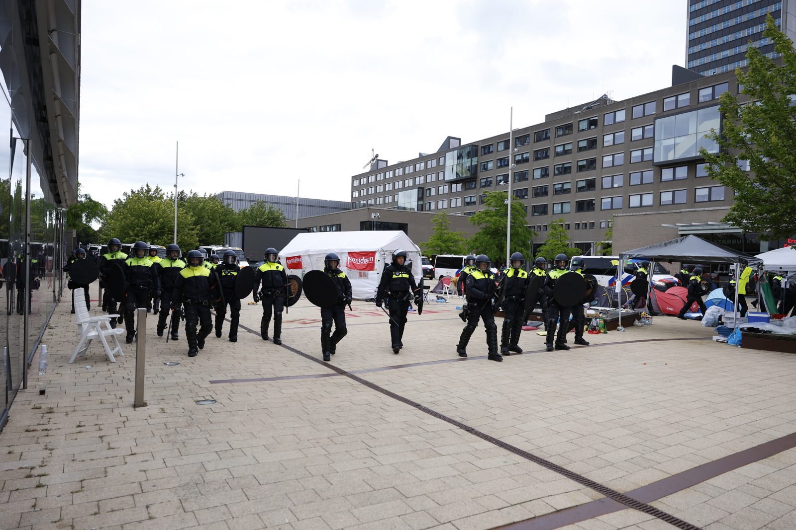 Demonstranten verlaten de campus in mars, universiteit ruimt tenten op