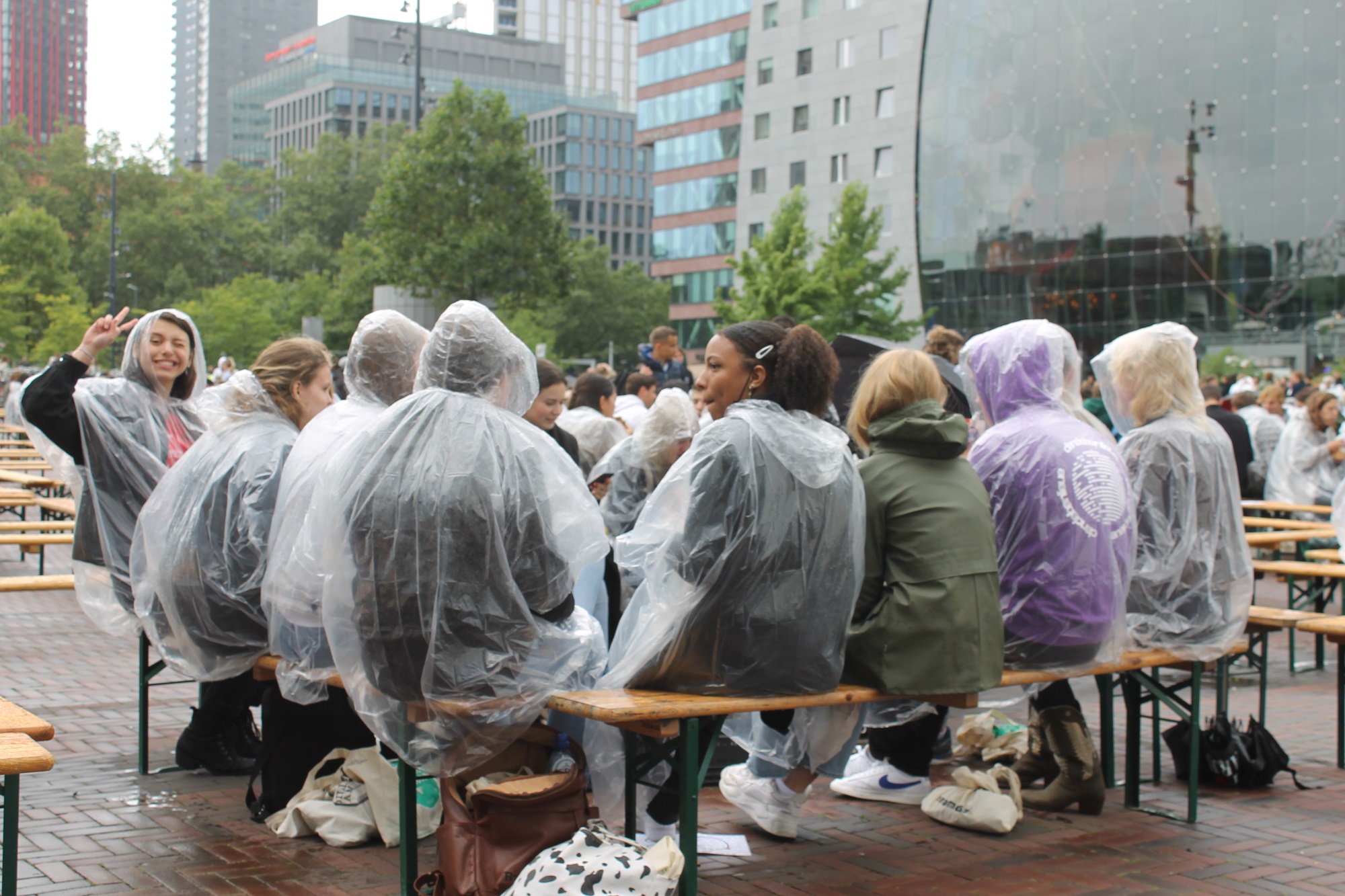 De regenachtige maandag is overgegaan naar een regenachtige dinsdag. Op de campus is het in anderhalf jaar tijd niet zo druk geweest. Op de informatiemarkt (dit jaar niet op de campus, maar in het park Oude Plantage) regent het ook lekker door. ‘s Avonds zitten de studenten droog in Ahoy, als ze niet morsen tijdens de biercantus.