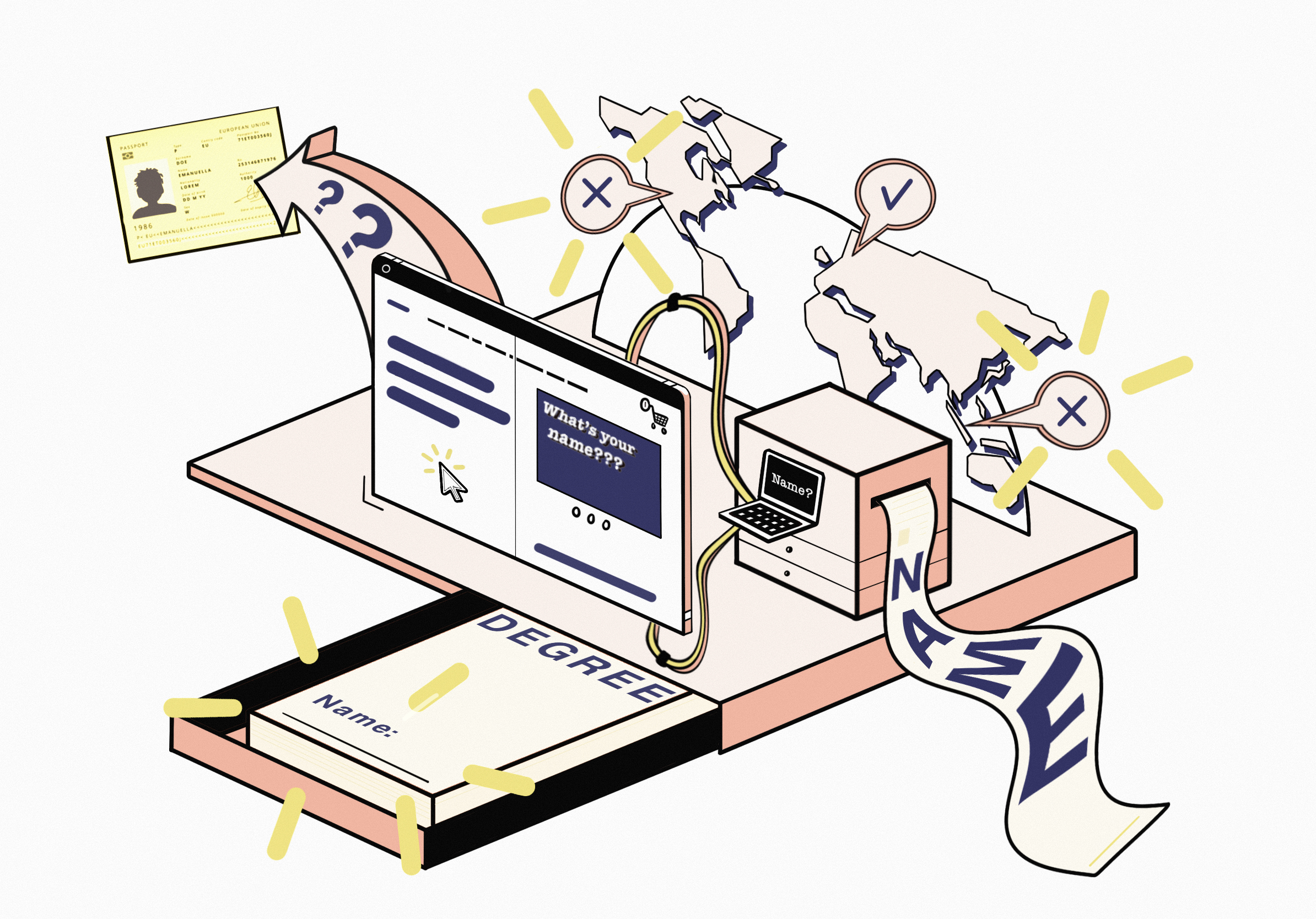 Internationale studenten die geen achternaam hebben, krijgen een streepje of een punt als…
